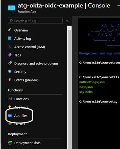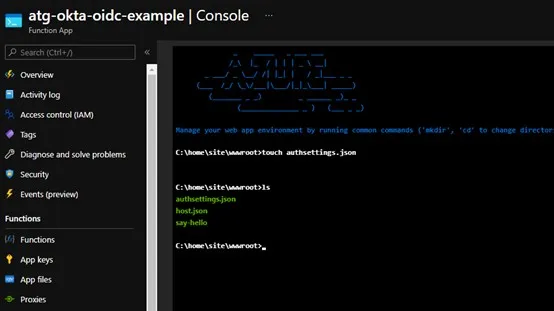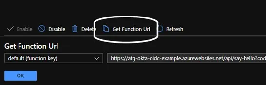 Function URL: https://atg-okta-oidc-example.azurewebsites.net/api/say-hello?code=