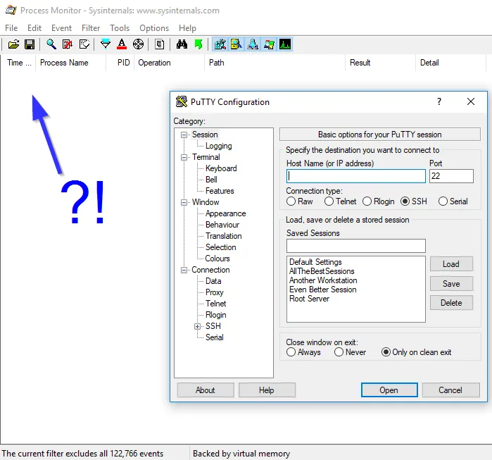 There exist many methods and tools for this task, but leveraging Process Monitor is by far the most complete and thorough. We’ll use my favorite application, PuTTY (a simple ssh/terminal client) as an example.