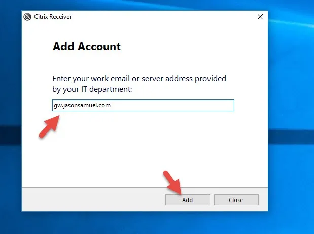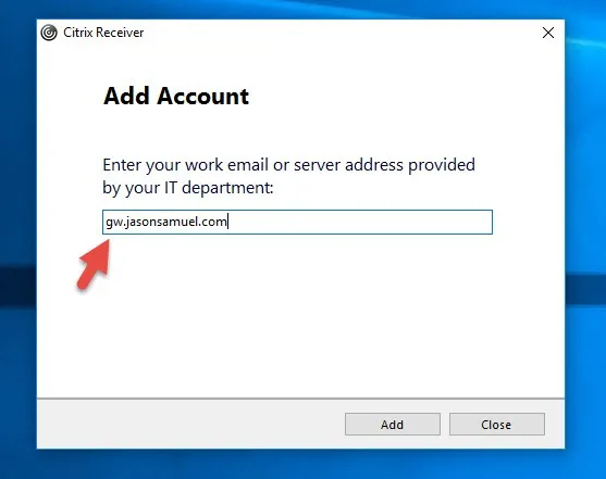 When you hit OK it takes you back to the Add Account dialog. So I put in my NetScaler Gateway URL again and hit Add: