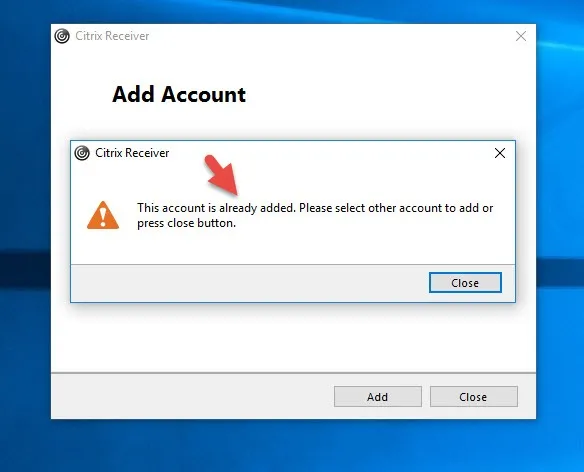 Now it gives me the error: “This account is already added. Please select other account to add or press close button.”