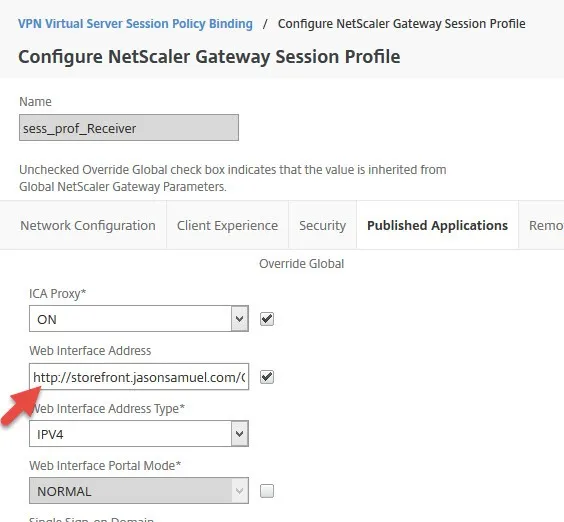 and here is the session profile it invokes. This URL it is hitting a load balanced vServer on the NetScaler with both my StoreFront servers behind it: