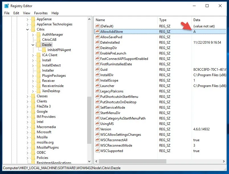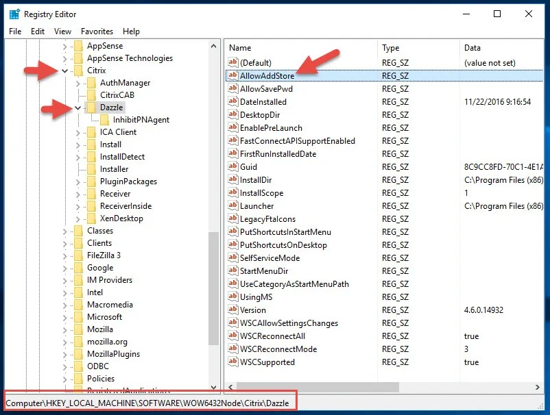 HKEY_LOCAL_MACHINESOFTWAREWow6432NodeCitrixDazzle