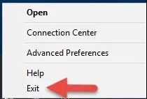 Now Receiver will ask you to Add Account again. Don’t do it. Go to the system tray, right click, Receiver and hit Exit: