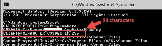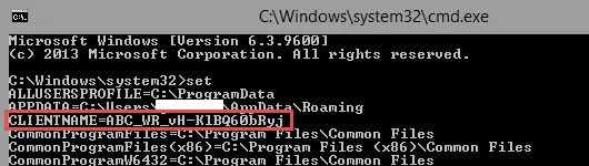 What you’ll see if you launch the command prompt from a web browser with this checked is this. You can see the CLIENTNAME variable is “WR_” followed by the randomly generated ID:
