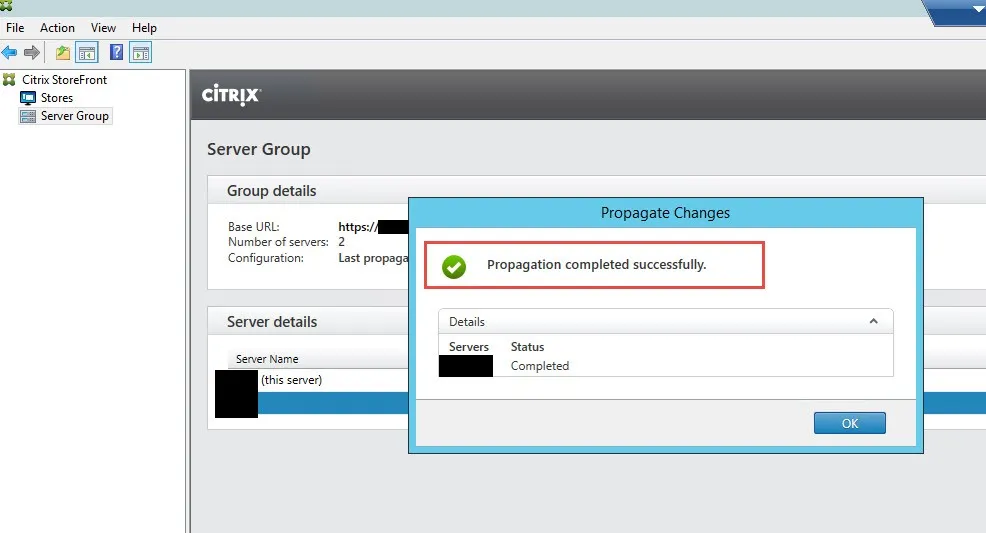 10. Now if you are running a 2 node StoreFront server group like me, open up the console on the StoreFront server you were applying these changes to and propagate changes.