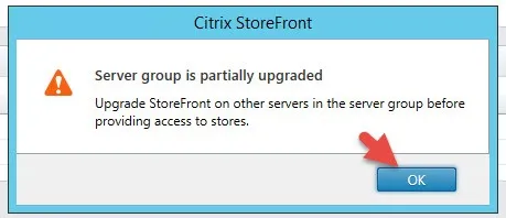 14. It’s going to open up the StoreFront console and tell you the server group is partially upgraded.