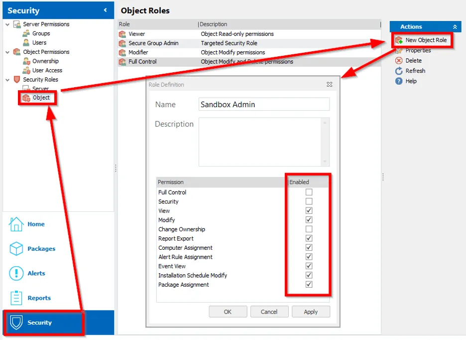 To start with this process, we need to create an “Object” Security Roll as follows: