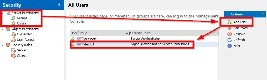 After the Object Security Roll has been created, we need to add the AD Security Group (Or user, in this example) with Logon Only permissions: