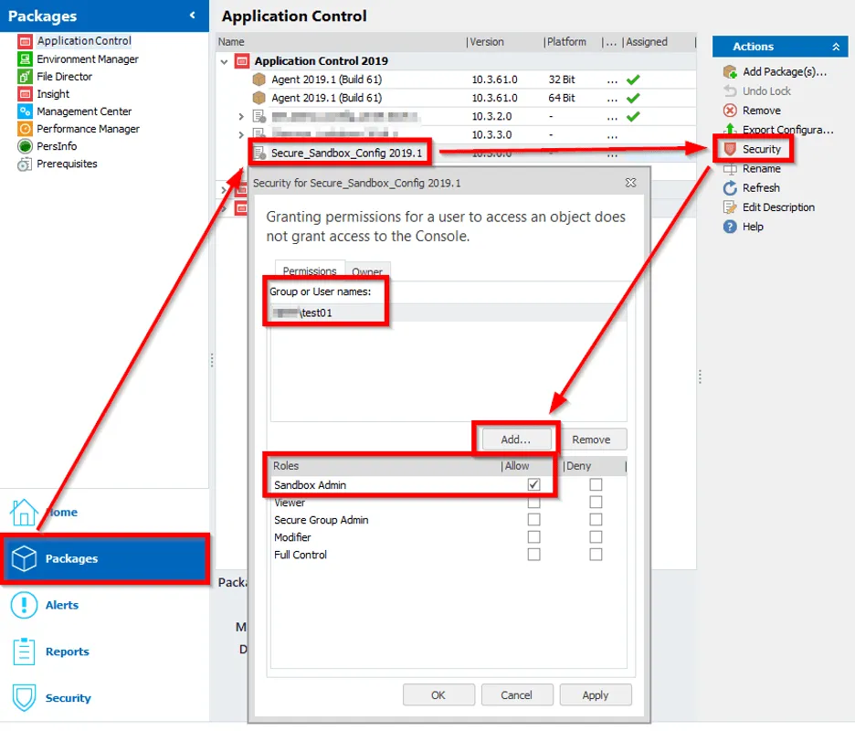 At this point, our test user (or group) now has administrative access to the Secure Sandbox Group. However, they have no access to any packages to assign. To do that, we need to grant the same Role to our target user/group, on the specific package they need to be able to open, modify, save and assign.