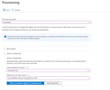 - Test the connection to make sure EntraID can connect to the provisioning agent.